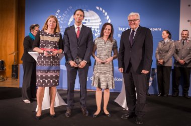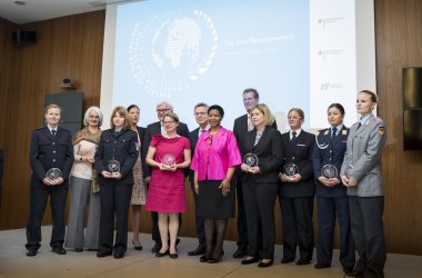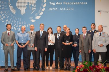 Seit 2013 findet jedes Jahr unter dem Motto „Einsatz für den Frieden“ der deutsche Tag des Peacekeeping statt. Dabei ehrt die Bundesrepublik Deutschland je drei Polizistinnen oder Polizisten, Soldatinnen oder Soldaten sowie zivile Expertinnen oder Experten – stellvertretend für alle Deutschen, die in internationalen Friedenseinsätzen arbeiten.